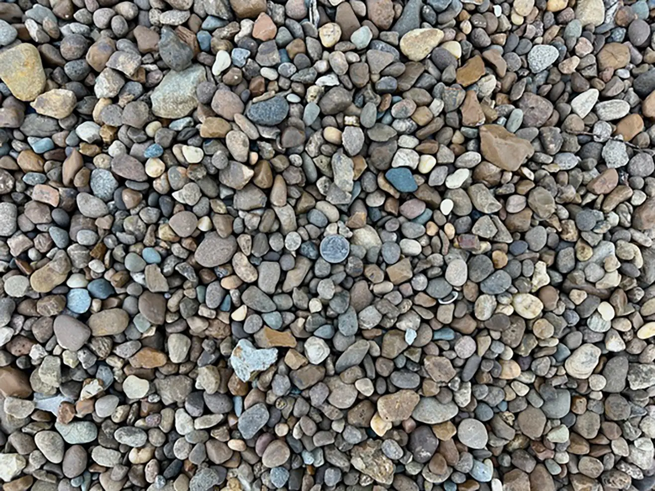 This smooth-textured river rock features a natural blend of browns, blues, tans, and reds. Available in sizes ranging from 3/8” to 1 ½”, it provides a warm and inviting look to any landscape. With an approximate coverage of 120 square feet per ton, this versatile stone is perfect for pathways, garden beds, and decorative accents.